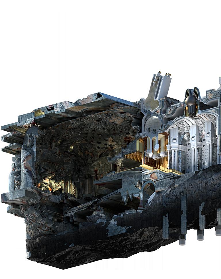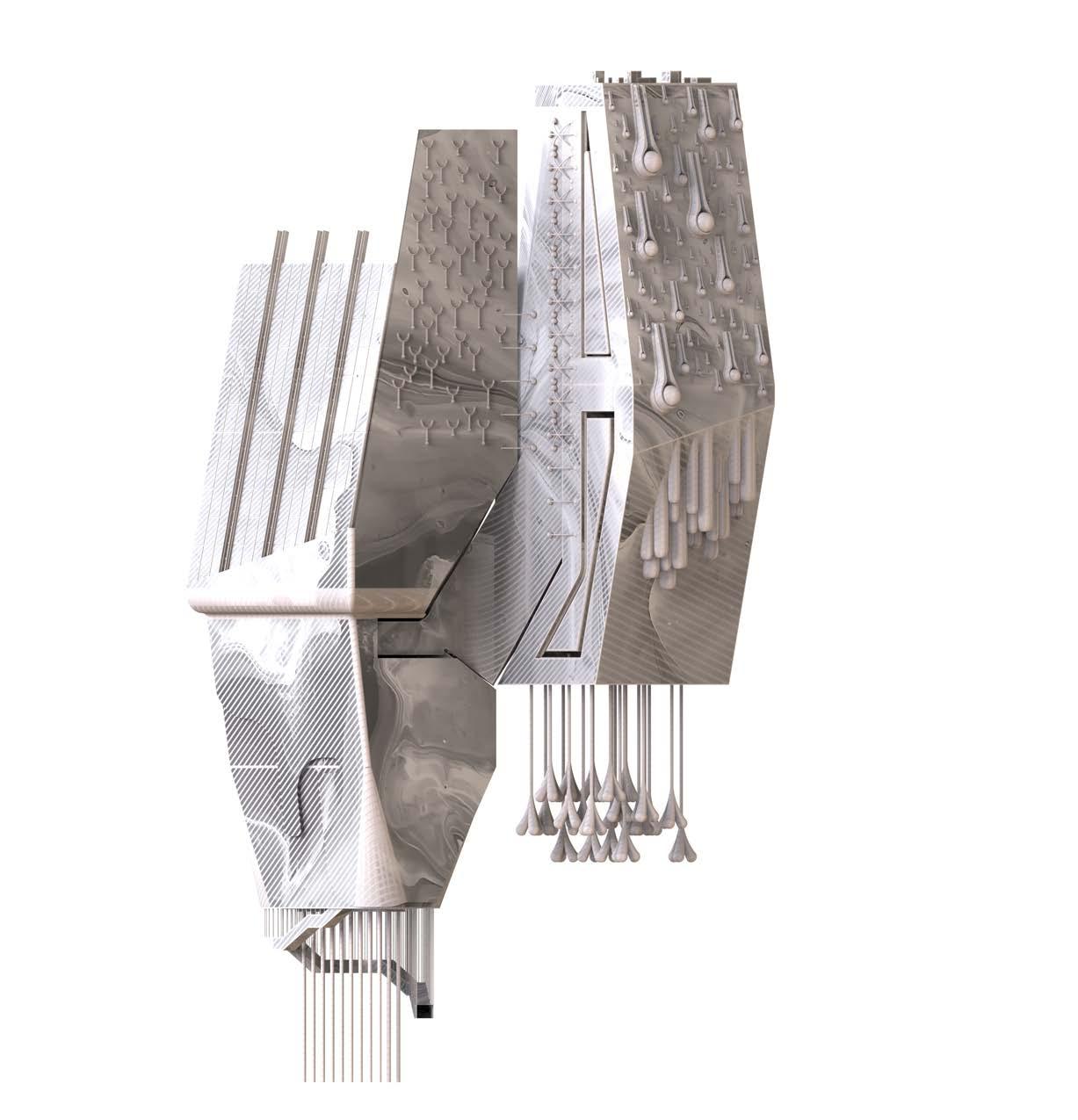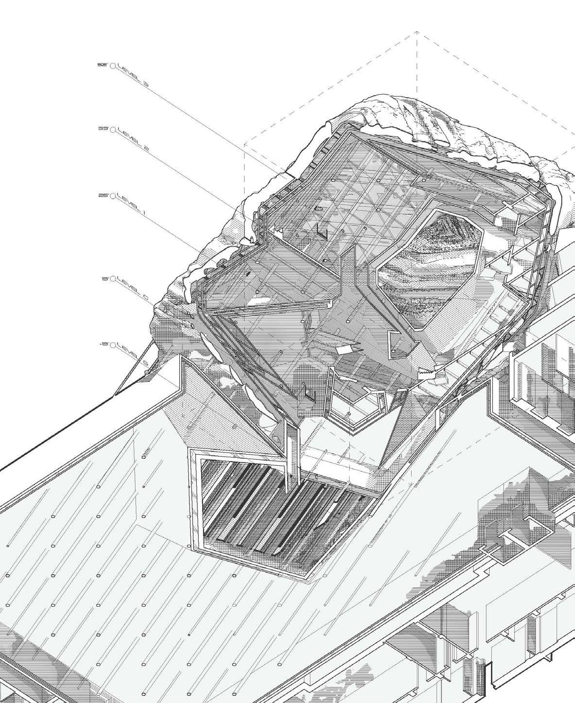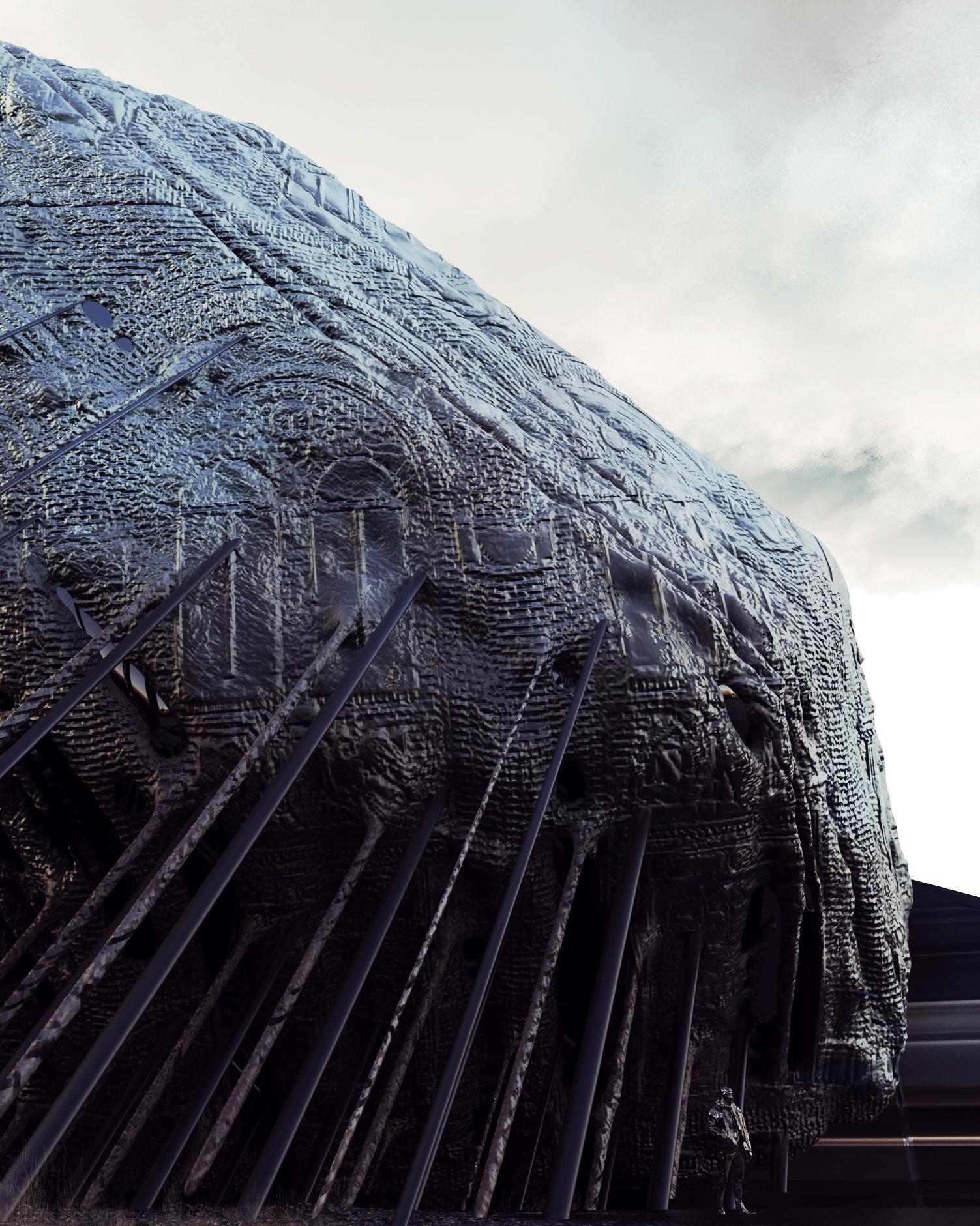 When considering the Penn Museum extension, a task was derived from the necessity to house artifacts that seldom see display time. The concept for the extension of the museum’s archives circled around the central idea of “Who does it belong to?”. In this solution, to further combat the ideas of oppressive colonialism, the artifacts are placed in a hermetically sealed environment, or a “new territory”, for only themselves to occupy. This was done as a means to honor the origins of which they came, but also to understand that a true owner of such artifacts cannot be determined in present day, only leading to debates ending in little to no proper outcome. Museums have never been seen as attempting to desecrate the artifacts, rather quite the opposite, by receiving intensive restoration and care, however the original owners of these artifacts were very much so violated. An epistemological question of whether these artifacts are extensions of the cultures today or are they themselves their own thing leads to the creation of this extension which favors the latter, by laying them to rest in a respectful geode of their own.