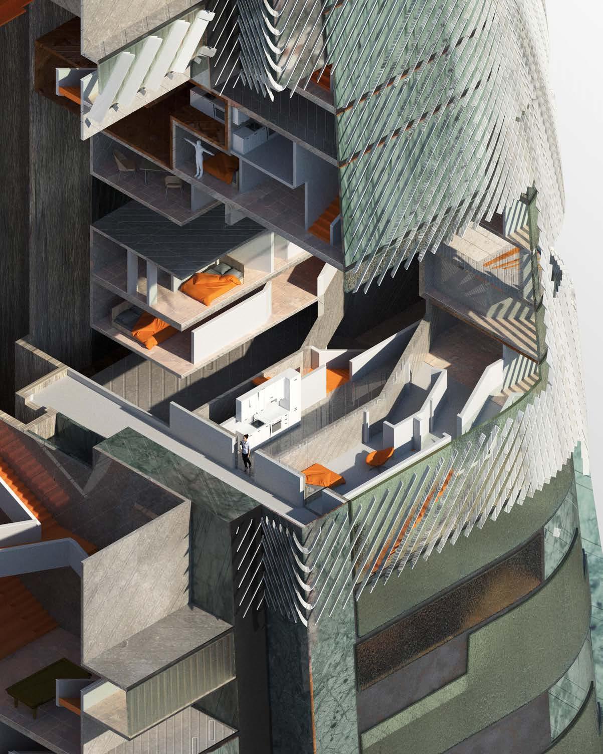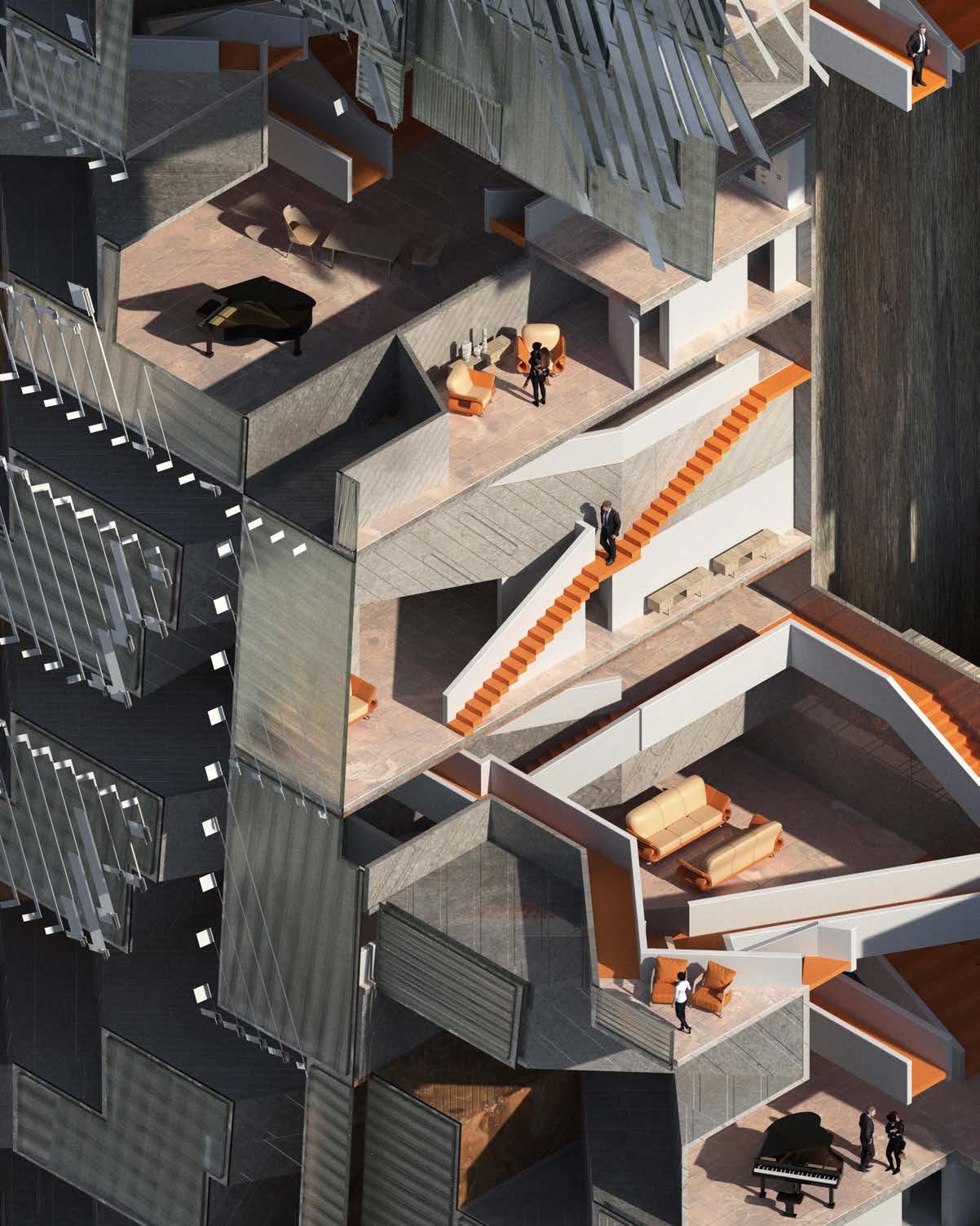 -Helped deliver 100% DD set of SKYHOUSE and constructed 1’=1/2” SD physical model