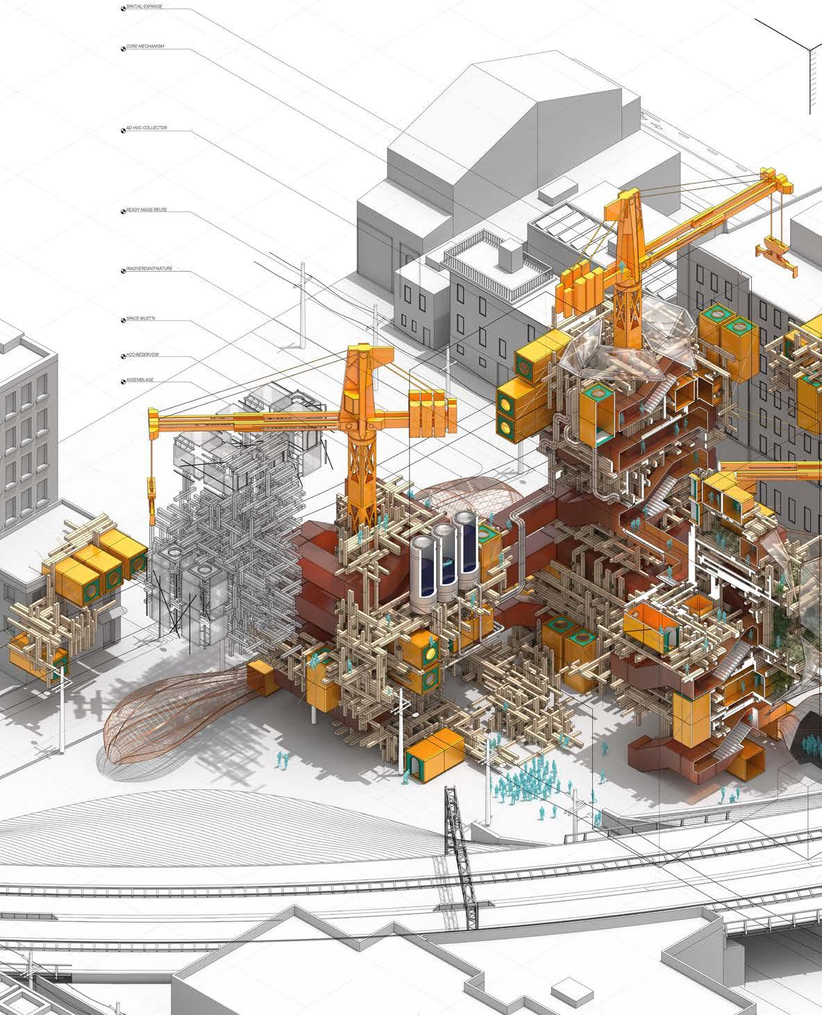 Through the speculation of future politics within the U.S.A., with Philadelphia being the epicenter of such change, the implementation of an Eco-Feminist New Deal, focusing on design for the people and the environment, is taken into consideration. IKEA Anarchy addresses the first stage of implementation, “Initiate through Acupuncture” where the primary goal is to provide a foundation of communal living in pockets of unused space, typically found in sites of contention, across Philadelphia. Here, a series of basic assemblies can be constructed to fit the needs of the surrounding spaces through the use of basic rule sets that yield growth and spatial qualities that can take on programs of: Assembly, Habitats, Gardens, Entertainment, Health care, or anything best suited for the needs of the people. Since this is only the first stage, it is also utilized as a testing site for various energy generating methods, water collection and purification systems, basic town hall methodologies, and farming with hydroponics so that as the following stages are implemented, the creation of a self sustaining commune of the people is viable, attempting to leave nothing to chance from the testing conducted in the first stage. The proposal intends to generate the strategic mechanisms as a starting point for the self-reparation of the urban tissue.