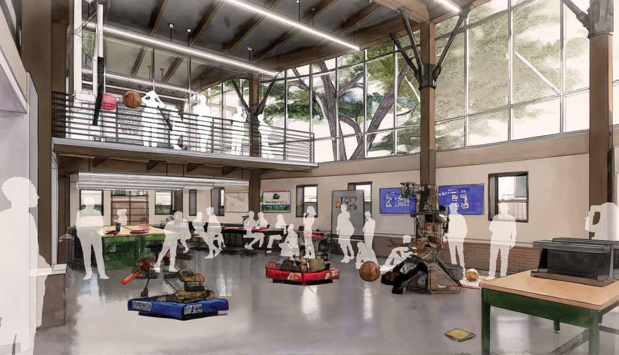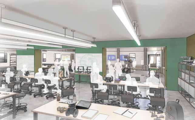 • A dramatic two-story, glass-enclosed addition will house a competition and demonstration space, an arena for showcasing students’ technological achievements at full scale.