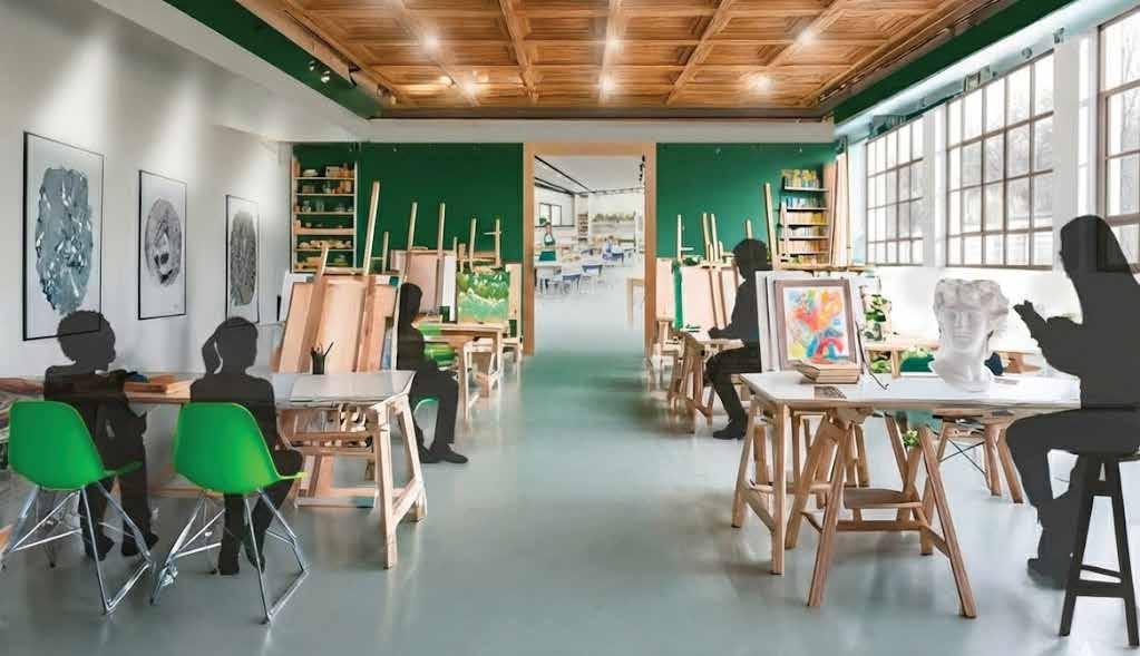 • Multiple studio zones will adapt for painting, sculpture, digital media, and group projects.