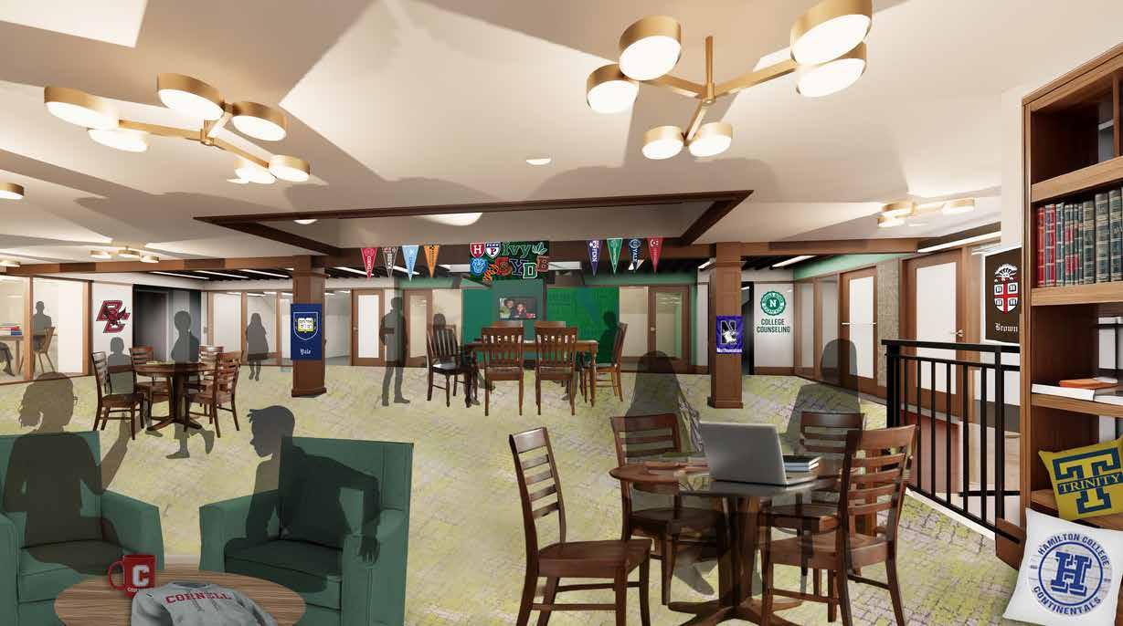 • The College Counseling Suite will relocate to newly created space in Mitchell Hall designed for family meetings, college visits, test prep activities, and more.