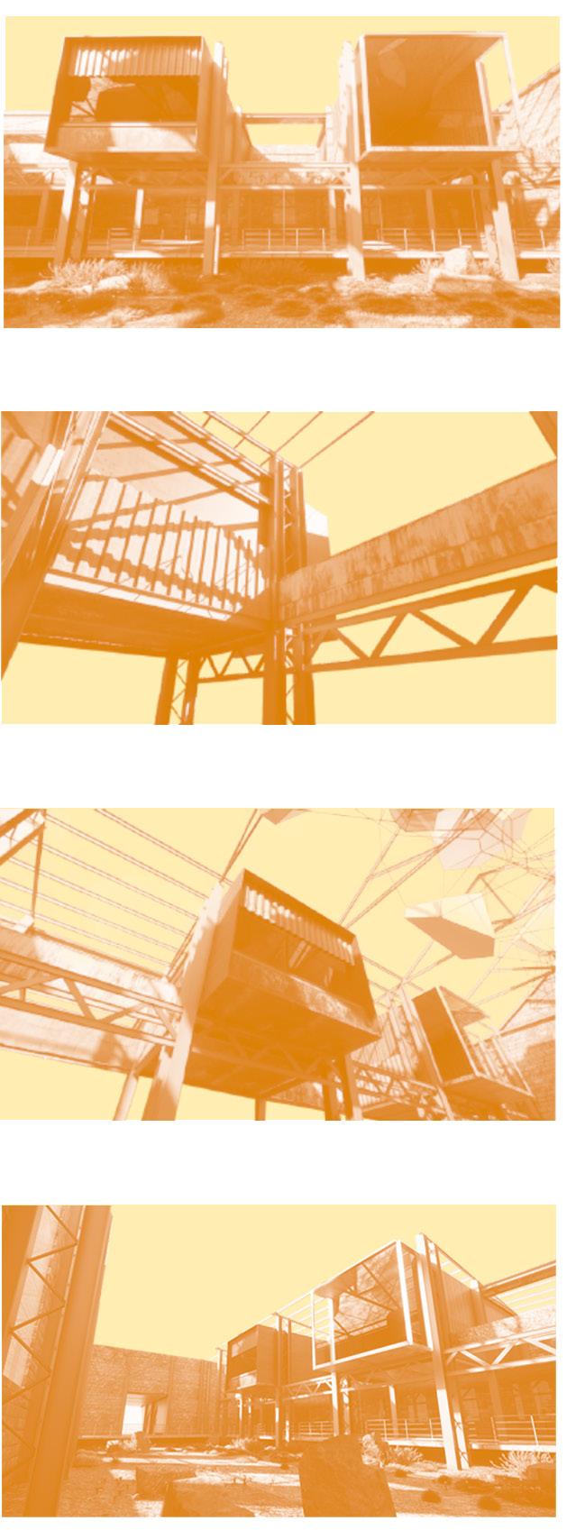 Since all industrial buildings within the designated area must be demolished for this project, a significant amount of construction waste will be generated. Repurposing this waste not only helps protect the environment but also allows for the reuse of rusting metal sheets from the original buildings within the block. This material can give the new architecture a distinctive ruin-like aesthetic, which creates a striking contrast when combined with new construction materials. Additionally, an art studio called Waterside Metal Art is located near the site. Collaborating with this studio could engage the local community in the project.