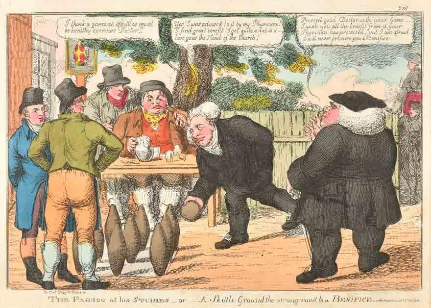 10. Charles Williams (act.1796 1830) British “The Parson at His Studies, or, A Skittle Ground The Wrong Road to a Benifice” Etching