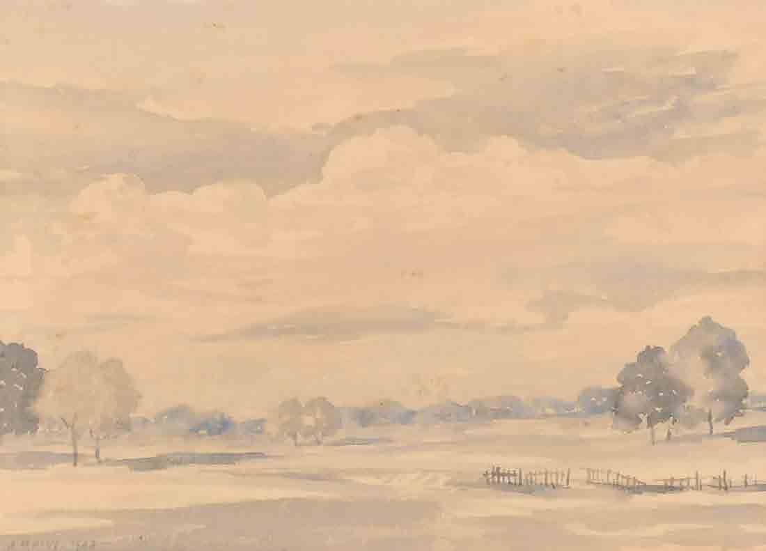 Inscribed on a label verso 14.5” x 10.75” (36.8 x 27.3cm).