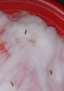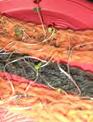The radicles are white, furry and long 3-5 mm. Some begin to settle into the holes in the wool.