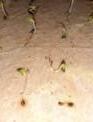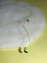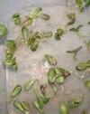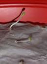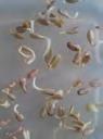 The radicles are white and furry and about 5-10 mm. Since the seeds are movable, some starts to penetrate into the agar substrate in search of nutrients and water. The opened parts of the seeds turn pale green.