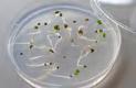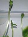 The sunflower seedlings are withered. The agar substrate is totally shrinken and let the seedlings in lack of water.