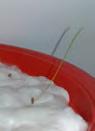 The seeds tips elongate to become radicles. The seeds are still movable on the agar substrate. They look more white and big. DAY 3