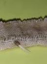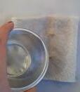 Some of the chia seeds are opening and the radicles bloom out. One of the seeds comes out the cotton band, making it more visible.