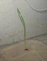 The last sunflower is withering because of the lack of water. The radicles become brownish and the foliage fall off on the surface. The felt has been watered again and the seedling recovers and gets up, but it still looks weak.