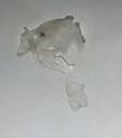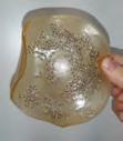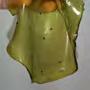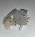 The small pieces shrink a lot and become slightly yellow. The material is very brittle.