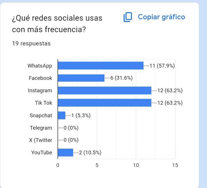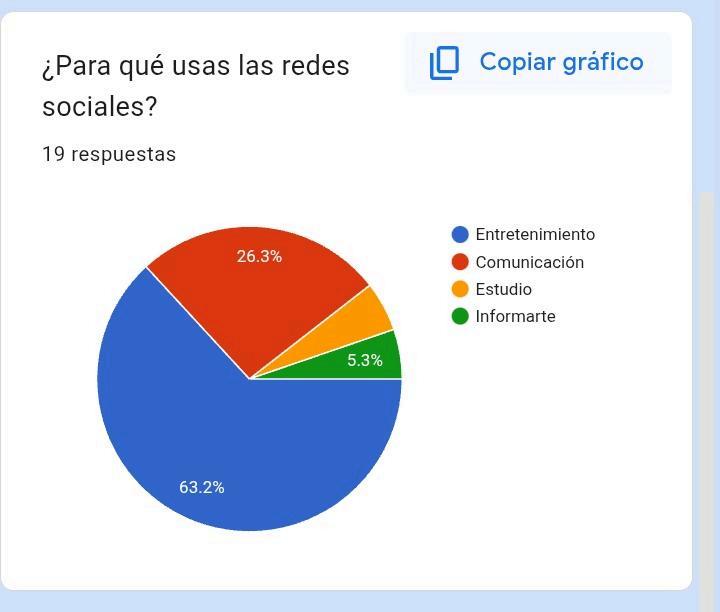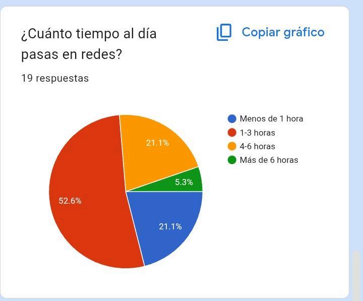 Edad:15-1718-20 +20EvieMasculino FemeninoPrefiero no decirlo Género¿Cuánto tiempo al día pasas en redes?Menos de 1 hora1-3 horas4-6 horasMás de 6 horas¿Qué redes sociales usas con mas frecuencia?EntretenimientoComunicaciónEstudioInformarte¿Para que usas las redes sociales?