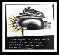 This is my Final Clay Lamp design after being fired showing the light being distributed through the tentacle's suckers.