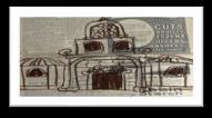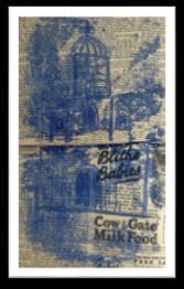 I used a wax stick to draw out a building then rolled out blue paint over the top. This created a washed-out rustic effect which fits wells with the oldstyle building.