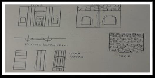 I used cardboard for the structure of the building with paper to show different patterns and textures. I outlined the house in red as it gave it a nice contrast between the brown carboard.