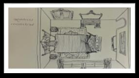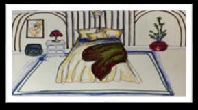 Used coloured pens and a blue ballpoint pen to generate a bedroom.