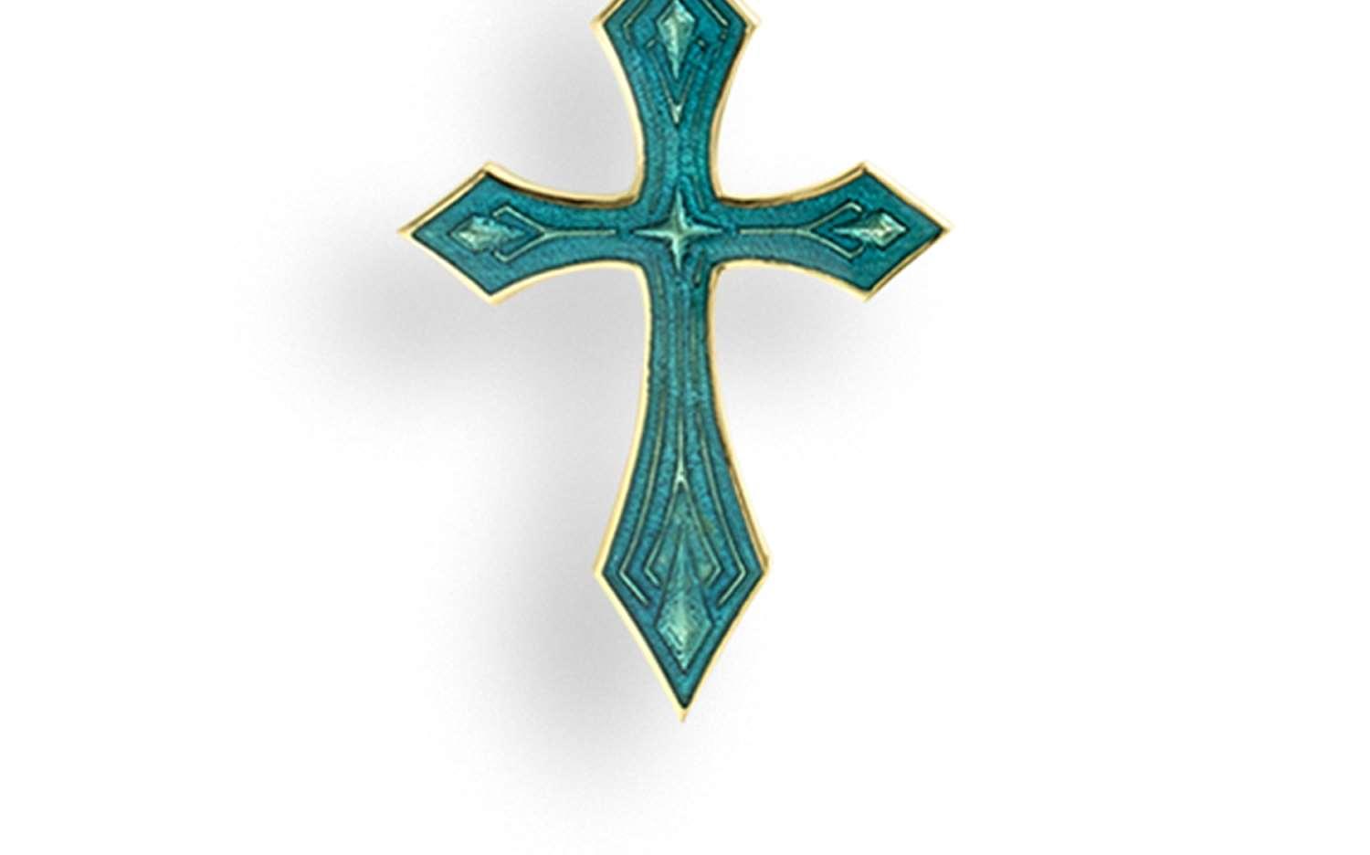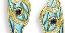 White&BlueSapphires BlueTopaz-Plique-a-Jour GoldPlated