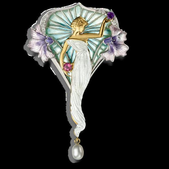 NB0648WA420 55mmPlique-a-Jour GoldPlated. Diamond-Pearl-Amethyst PinkTourmaline