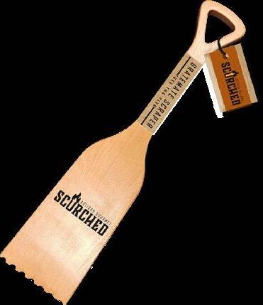 • Slant-edge metal grill scraper