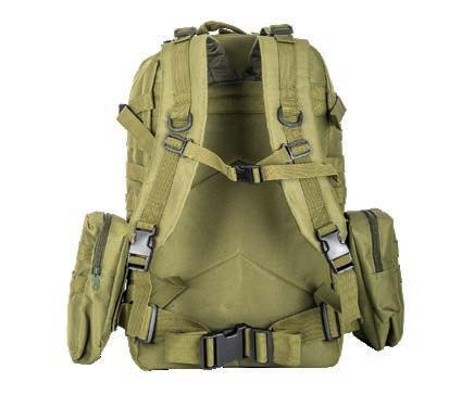 • Multiple pockets, including front and back zippered pockets and two large zippered side pockets.