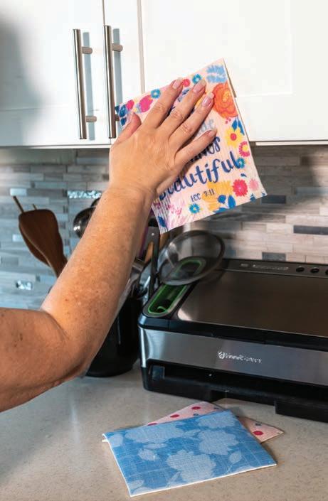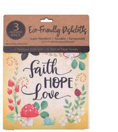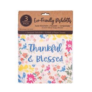 Set of three dishcloths that are super absorbent, reusable, compostable, machine washable, and dishwasher safe. 70% cellulose, 30% cotton. 7.5" x 6.75"