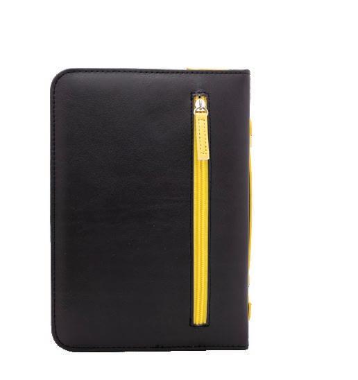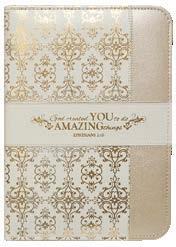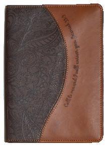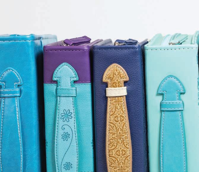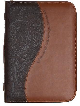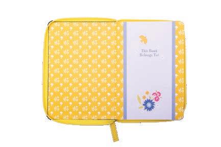 Zippered closure, reinforced spine, and secure carrying handle. Includes ribbon bookmark (shown open and folded).