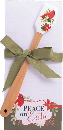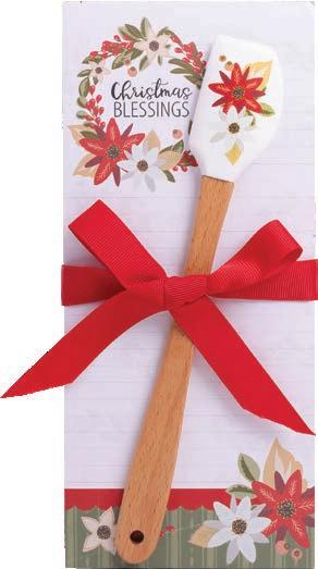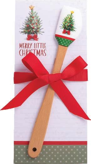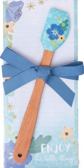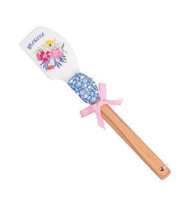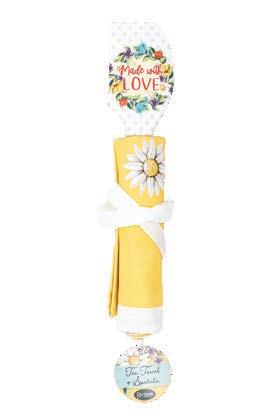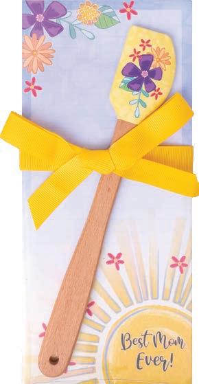 Beautifully designed silicone spatula with coordinating tea towel wrapped around it and secured with a bow. The perfect grab-and-go gift! Tea Towel: 100% cotton, 17.25" x 26.5" (machine washable); Spatula: Silicone, 12" x 2.5" (dishwasher safe)