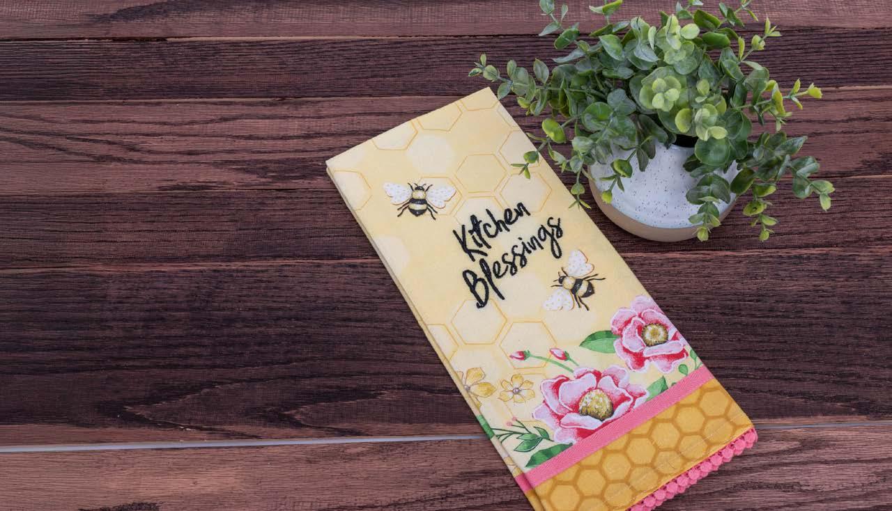 This floral-inspired collection of kitchen and home decor is a daily reminder of God's goodwill and blessings.