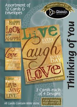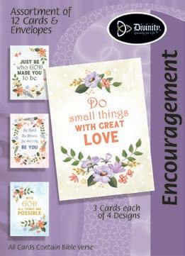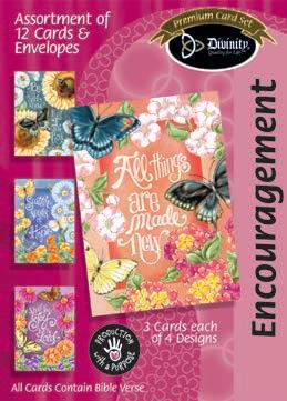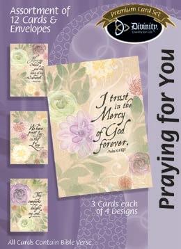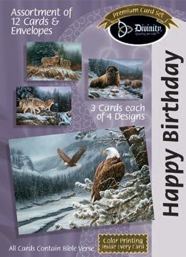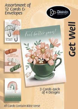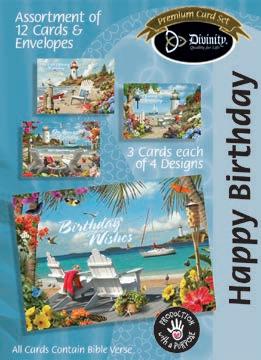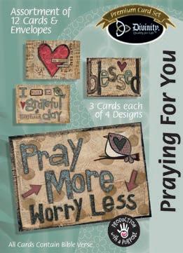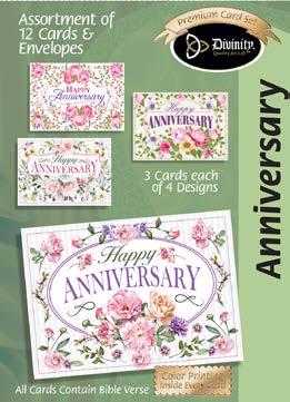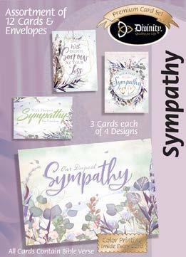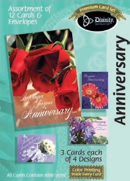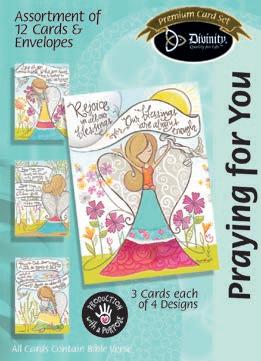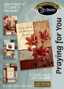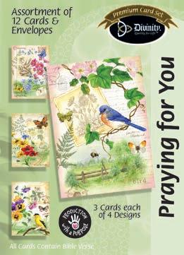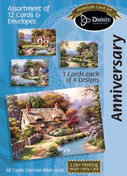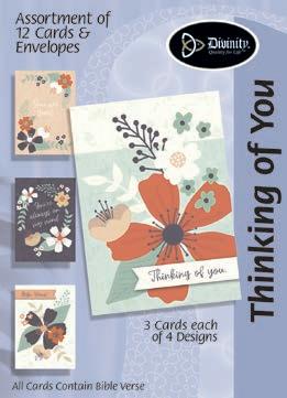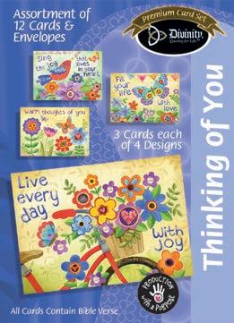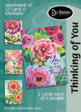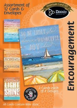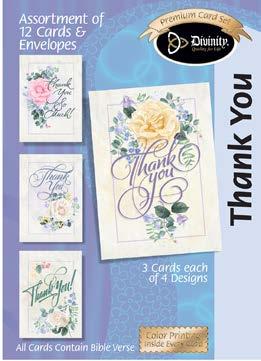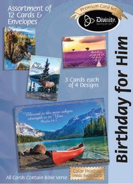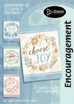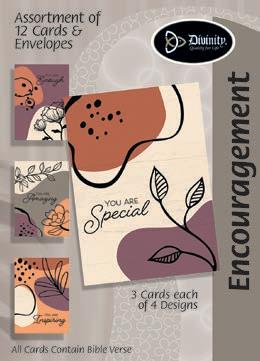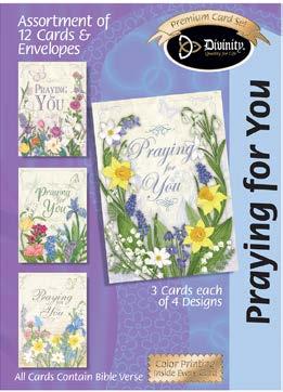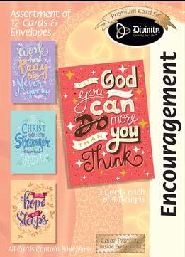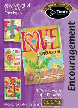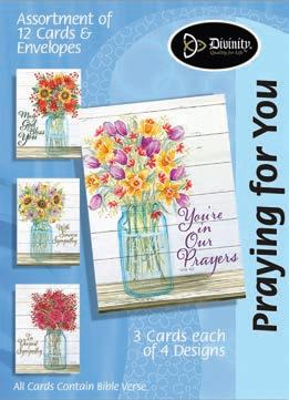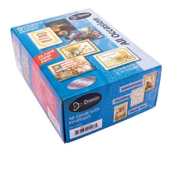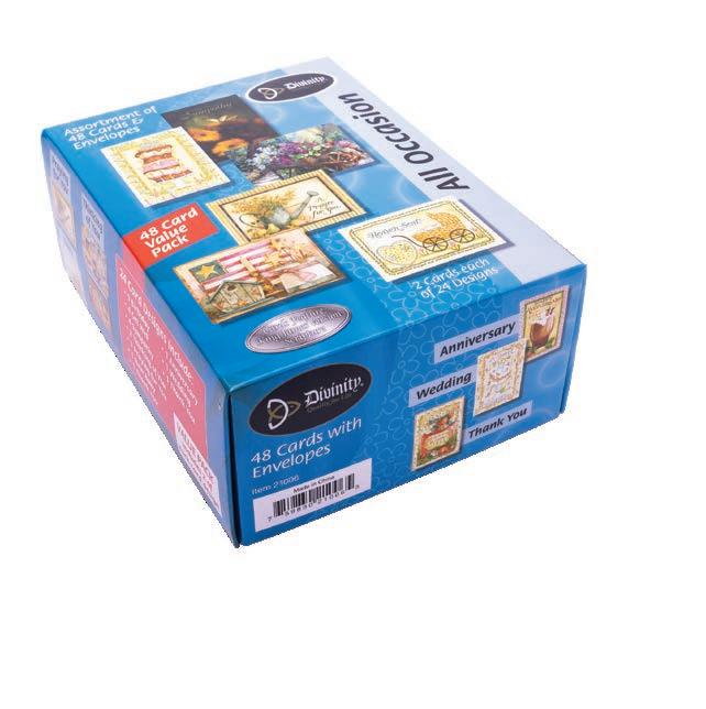 Assortment: 5 Encouragement, 5 Inspirational, 5 Happy Birthday, 5 Get Well, 5 Sympathy, 5 Praying for You, 5 Thank You, 2 Wedding, 2 Anniversary, 2 Special Occasion, and 2 Seasonal