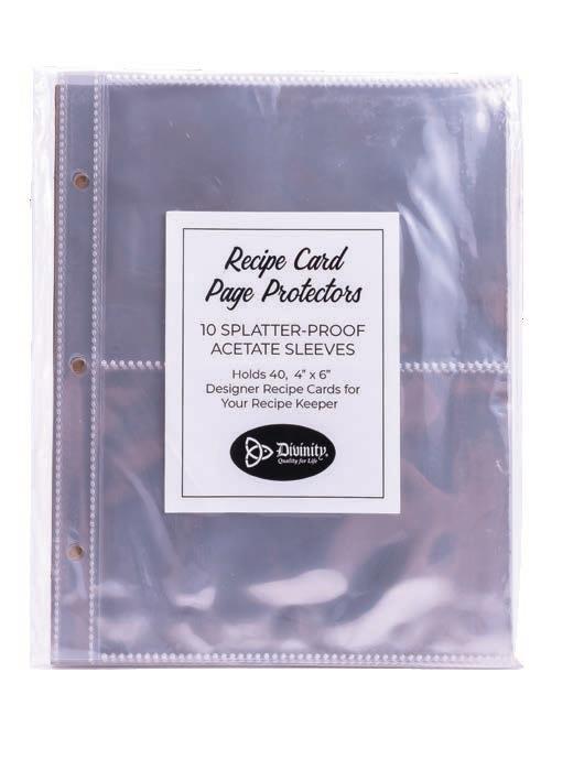 Pack of 10 splatter-proof acetate sleeves that hold up to 40 (4" x 6") recipe cards. Fits all Divinity Recipe Keepers. 7.25" x 8.75"