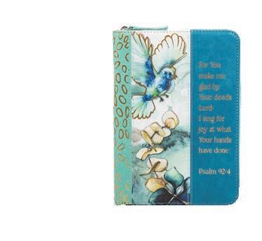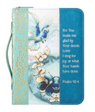 4 of each Large Bible Cover: Pray-Floral; Blessed-Teal/ Blue; New Beginning Luke 1:78-79