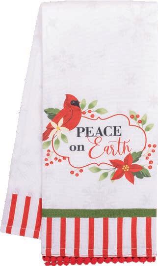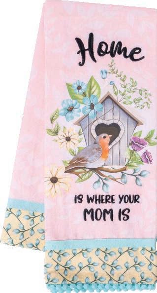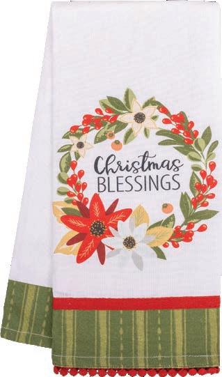 100% cotton with embroidered sentiment, beautifully printed artwork, coordinating fabric strip, and crochet trim. Machine washable. 18" x 28"