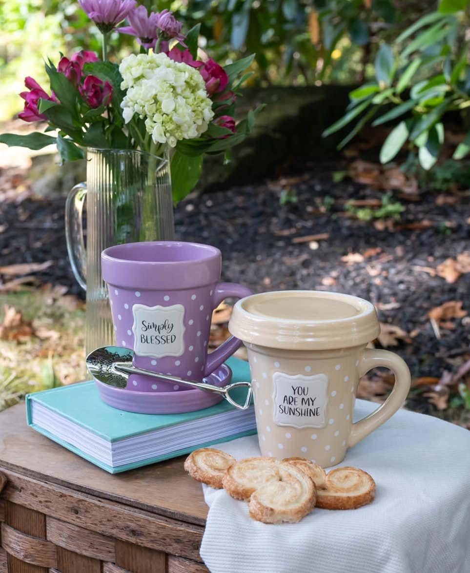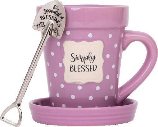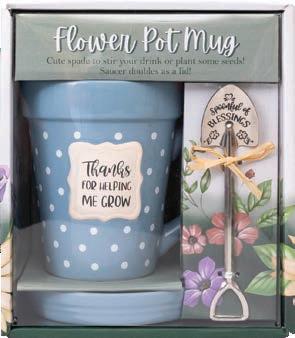 4 of each Flower Pot Mug: Simply Blessed; Helping Me Grow; You Are My Sunshine