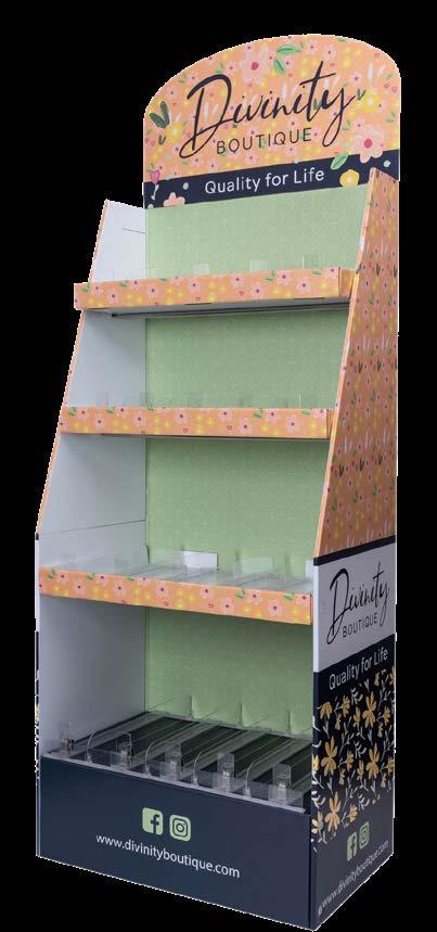 Build your own stunning Divinity Boutique collection anywhere in your store with this versatile, easy-to-assemble floor display. Designed to showcase a wide range of Divinity’s best-selling products, it lets you create a beautiful, customizable presentation that attracts attention and drives sales.