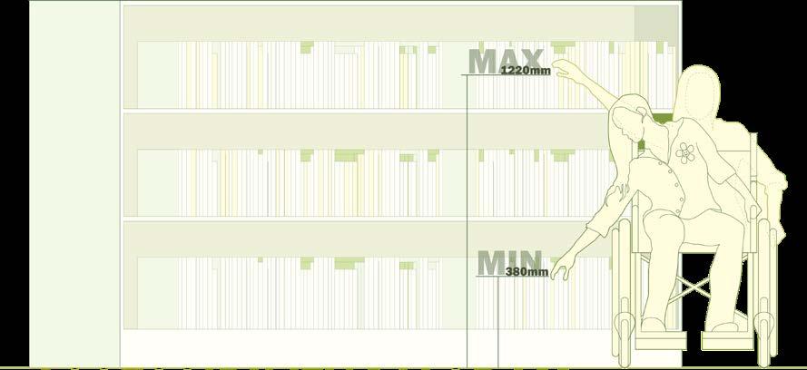 All shelving units in the library is designed to be accessible to all users without the use of external help.