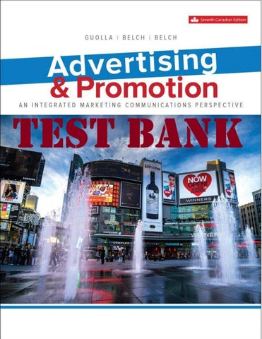 TEST BANK for Advertising & Promotion 7th Canadian Edition by Michael Guolla. ISBN-10 : 1260060411.