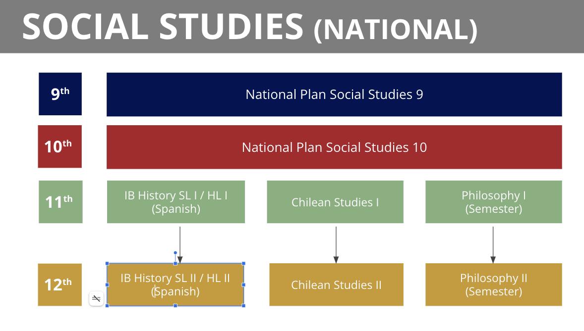 Course Code Credit Grade National Plan Social Studies 9 2111 1 9 National Plan Studies 10 2112 1 10 Philosophy I 2132 5 11 IB History SLI (Spanish) 2041 1 11 IB History HLI (Spanish) 2039 1 11 Chilean Studies I 2117 1 11 Philosophy II 2133 .5 12 IB History SL II (Spanish) 2042 1 12 IB History HL II (Spanish) 2040 1 12 Chilean Studies II 2118 1 12
