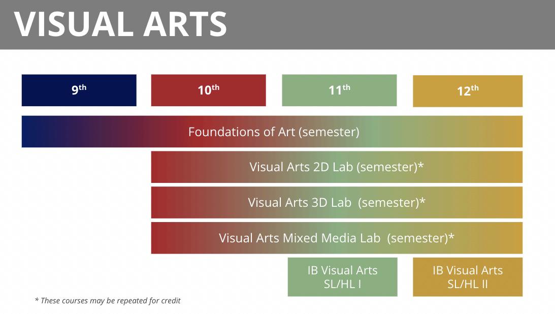 Course Code Credit Grade Foundations of Art 6005 5 9-12 Visual Arts 2D Lab* 6038 .5 10-12 Visual Arts Mixed Media Lab* 6036 5 10-12 Visual Arts 3D Lab* 6045 .5 10-12 IB Visual Arts SL I 6043 1 11 IB Visual Arts HL I 6044 1 11 IB Visual Arts SL II 6041 1 12 IB Visual Arts HL II 6042 1 12