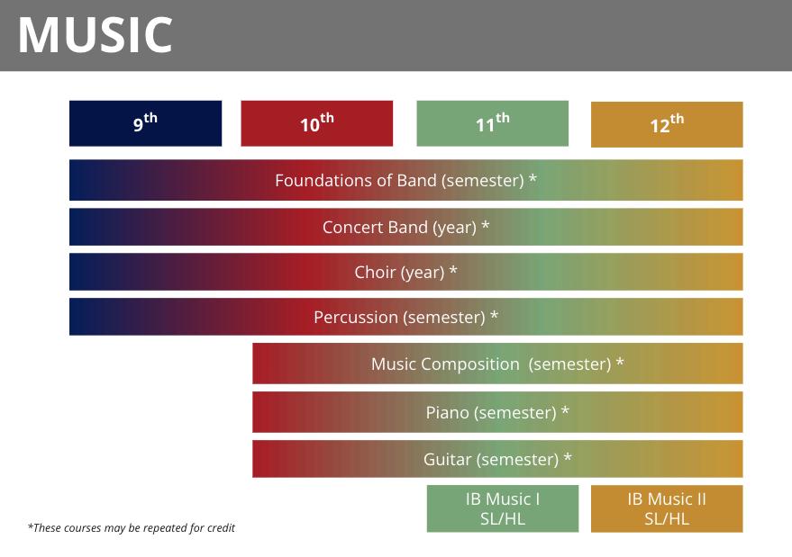 This is the second year of a two year sequence, which fulfills the requirements of the IB Music HL curriculum. This course is a continuation of the first year in IB Music SL I course. Students continue to develop their performance and composition portfolios and work towards the final exams.