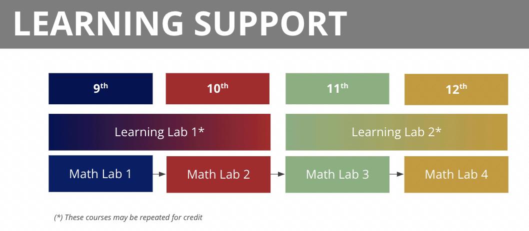 The high school Learning Lab course has been designed to assist students in various academic areas of the learning process, such as tracking assignments in different classes, communicating with teachers, and better organization of academic life. Learning Lab Also helps students build their understanding of course content by providing checks for understanding, feedback, and scaffolding. Students also participate in mini-lessons to improve academic performance and progress toward individual goals throughout the year. Learning Lab, students receive individual and small-group instruction. Additionally, Learning Lab teachers conduct limited inclusion support in core classes and partner with classroom teachers. Registration for this course is made by teacher placement only.