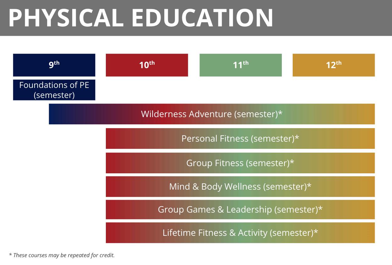 The Foundations of PE course emphasizes self-management, self-improvement, social responsibility and physical activity for health and wellness. Students will practice developing and implementing plans for self-improvement through a variety of group, team and individual experiences and challenges. Additionally, students will walk away from this foundation course with skills, strategies and tools they can apply in a variety of contexts within and outside of physical education. This course is an introductory course that will set students up for success with HS PE courses and the pursuit of personal passions as a physically active individual.