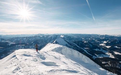 Aktive Auszeit im Mariazellerland Skitourengeher:innen sind auf der Gemeindealpe, wo sie zwei markierte Aufstiegsrouten vorfinden, ebenfalls herzlich willkommen. Für Verschnaufpausen stehen vier ausgezeichnete Skihütten zur Verfügung. Die regionale, hausgemachte Kulinarik schmeckt im Liegestuhl auf der Sonnenterrasse mit Blick auf das beeindruckende Bergpanorama besonders gut.