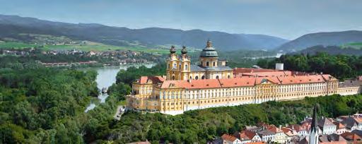 Abbey Melk | Melk Abbey is posed on a large rock above the city. Highlights include the Kaiserstiegestairs, the imperial rooms, the magnificent marble hall and library, as well as the high-baroque collegiate church with its precious frescoes. | Page 78