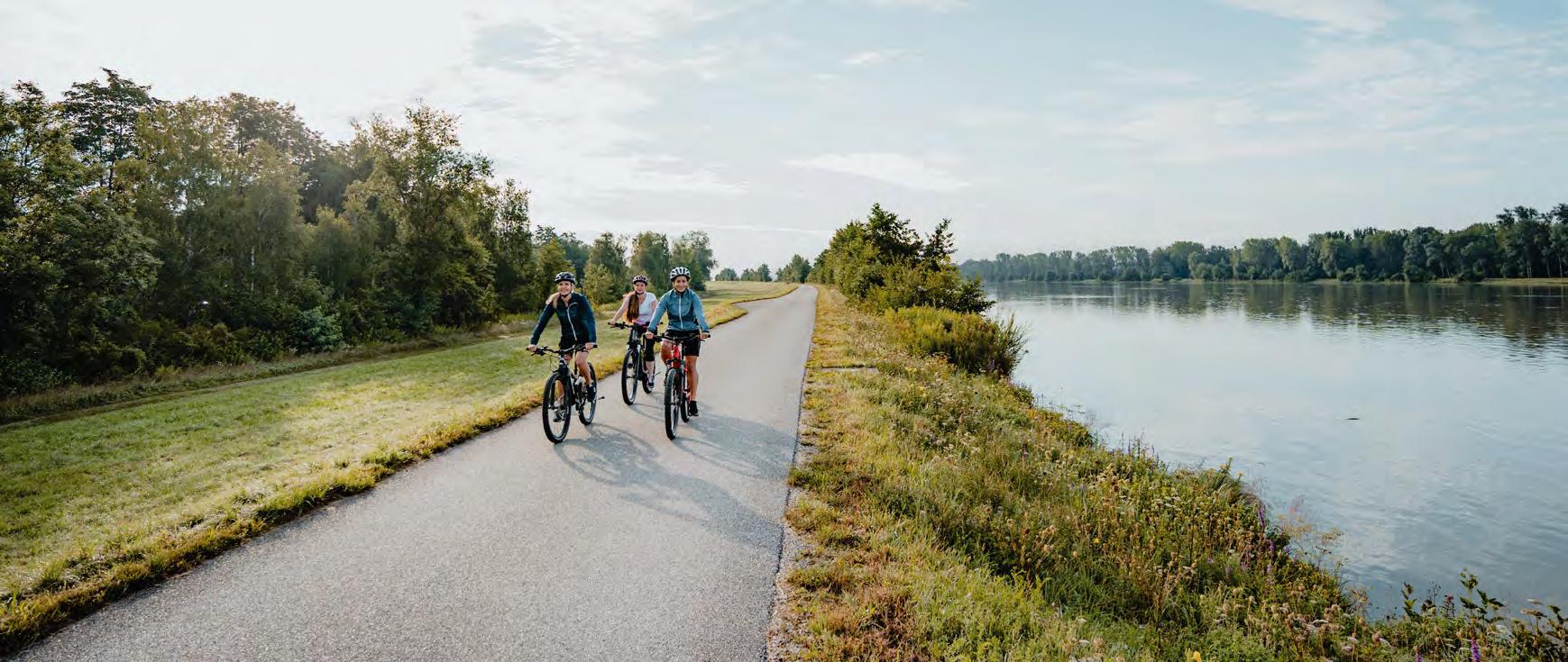 The Danube Cycle Path from Passau to Bratislava has a length of about 381 km and can generally be cycled on both banks.
