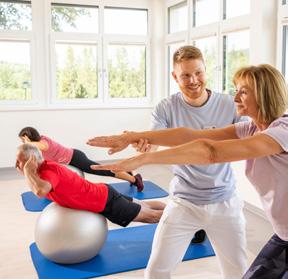 Im Vordergrund steht die Behandlung von Beschwerden am Stütz- und Bewegungsapparat, chronischen Rückenund Gelenkschmerzen sowie akuten Schmerzzuständen. Im Rahmen des Gesundheitsleistungen-PLUS-Programms werden aber auch weitergehende Therapien wie Akupunktur und Raucherentwöhnung oder das Faszien-DistorsionsModell angeboten. Von Heilmassagen über Bewegungstherapien bis zu Biofeedback – für jeden Gast wird ein individuell abgestimmter Therapieplan erstellt. Immer getreu dem Motto: Auszeit vom Alltag nehmen – Gesundheit verbessern und Wohlbefinden fördern.