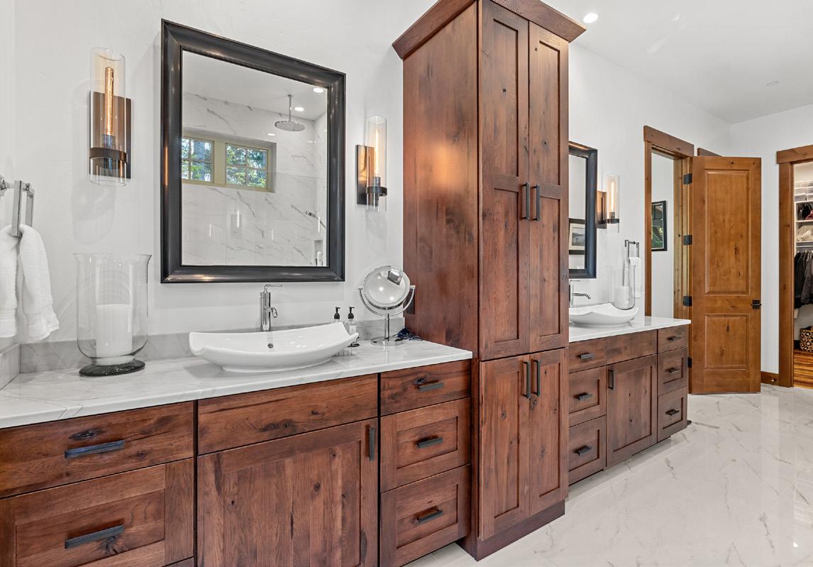 • Luxe finishes include Kohler plumbing fixtures, Restoration Hardware lighting and cabinet hardware