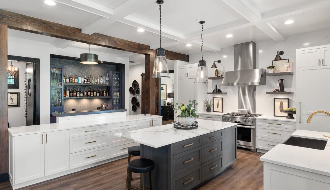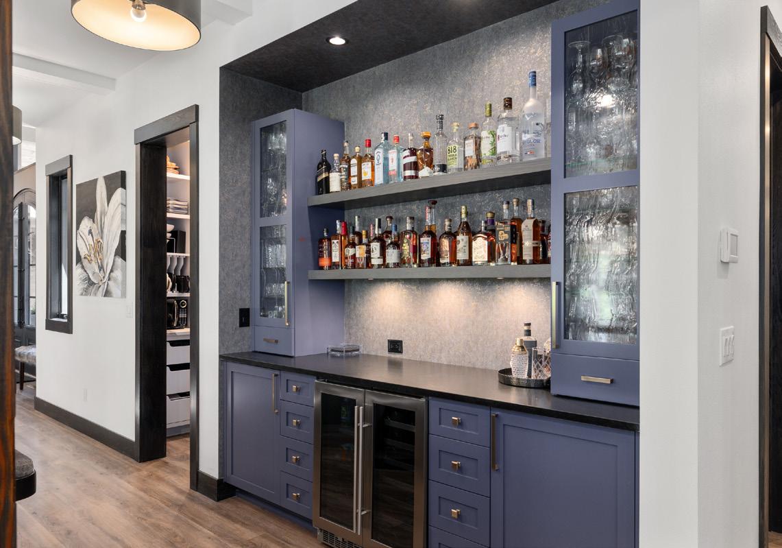 • Butler’s pantry with wine storage wall, coffee station, and custom two-way door