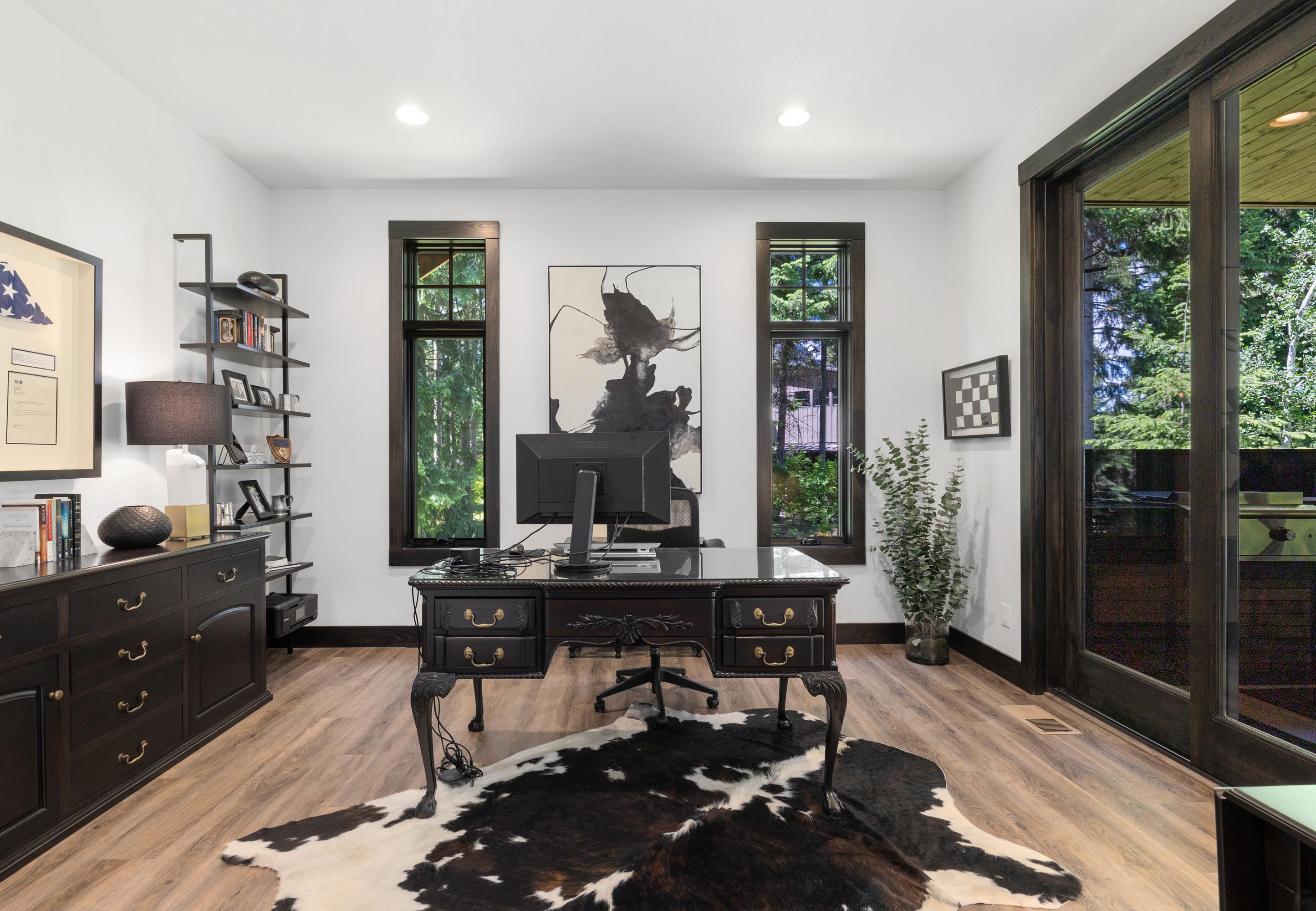 Custom glass barn door leads to office