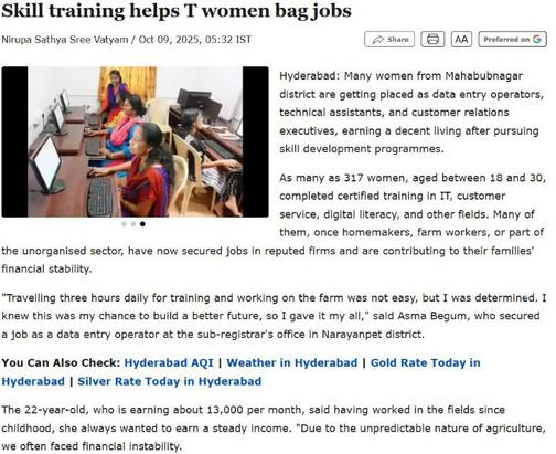 317 women aged 18–30 completed certified training in IT, customer service, and digital literacy Many, once homemakers or informal workers, are now employed in reputed firms and supporting their families financially.